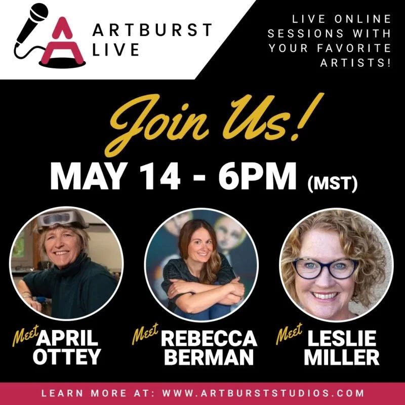 Eeeek! Yay! I’m being interviewed by Jennifer Steck as part of the Artburst Live! series along with fellow artists, April Ottey and Leslie Miller.